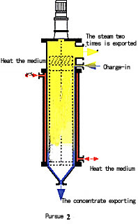 重組份(高沸點)沿著加熱面以螺旋型軌道流向蒸發器底部(大約幾秒)從出口排出。